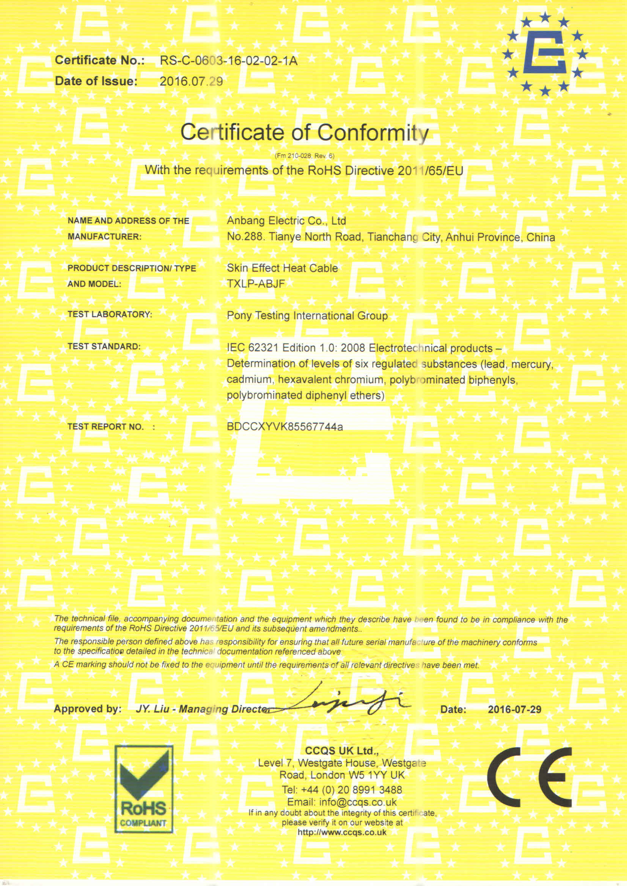 安邦電氣股份有限公司,總部位于北京市長(zhǎng)安街,成立于2004年,注冊(cè)資金10088萬(wàn)。安徽生產(chǎn)基地占地面積63000平方米,擁有66套各類(lèi)生產(chǎn)線,其中進(jìn)口生產(chǎn)線6套。國(guó)家高新技術(shù)型企業(yè),滁州市市長(zhǎng)質(zhì)量獎(jiǎng)企業(yè),專(zhuān)精特新“小巨人”企業(yè),擁有國(guó)家知識(shí)產(chǎn)權(quán)局授權(quán)的45項(xiàng)專(zhuān)利,其中發(fā)明專(zhuān)利28項(xiàng) , 主筆《太陽(yáng)能熱利用自限溫電熱帶安裝規(guī)范》行業(yè)標(biāo)準(zhǔn),參編《自限溫電伴熱帶》國(guó)家標(biāo)準(zhǔn)、《工業(yè)和商業(yè)用電阻式伴熱系統(tǒng)》國(guó)家標(biāo)準(zhǔn)、《太陽(yáng)能熱利用自限溫電熱帶》行業(yè)標(biāo)準(zhǔn)、《爆炸性環(huán)境 電阻式伴熱器》國(guó)家標(biāo)準(zhǔn)等7項(xiàng)國(guó)家標(biāo)準(zhǔn)。企業(yè)通過(guò)UL認(rèn)證,國(guó)家強(qiáng)制性 CCC產(chǎn)品認(rèn)證,ISO9001質(zhì)量管理體系認(rèn)證,ISO14001環(huán)境管理體系認(rèn)證,ISO45001職業(yè)健康安全管理體系認(rèn)證,Q/SHS0001.1健康、安全與環(huán)境管理體系認(rèn)證,歐盟防爆ATEX認(rèn)證,歐盟CE認(rèn)證,RoHS認(rèn)證,俄羅斯海關(guān)聯(lián)盟認(rèn)證,國(guó)家防爆電氣CCC證書(shū)。產(chǎn)品系列:集膚伴熱系統(tǒng)、電伴熱系統(tǒng)、電加熱器、電地暖系統(tǒng)、集儀器儀表、電線電纜、高低壓配電柜(箱)、電纜橋架、閥門(mén)管件等等設(shè)計(jì)、制造、銷(xiāo)售。產(chǎn)品應(yīng)用于航天航空、軍工、石油、石化、天然氣、機(jī)場(chǎng)、化工、鋼鐵、隧道、消防、養(yǎng)殖、融雪化冰、室內(nèi)供暖、國(guó)家電網(wǎng)及眾多電廠等等國(guó)家重點(diǎn)工程。出口美國(guó)、英國(guó)、德國(guó)、俄羅斯、韓國(guó)、日本、哈薩克斯坦、烏克蘭、伊朗等眾多國(guó)家。
